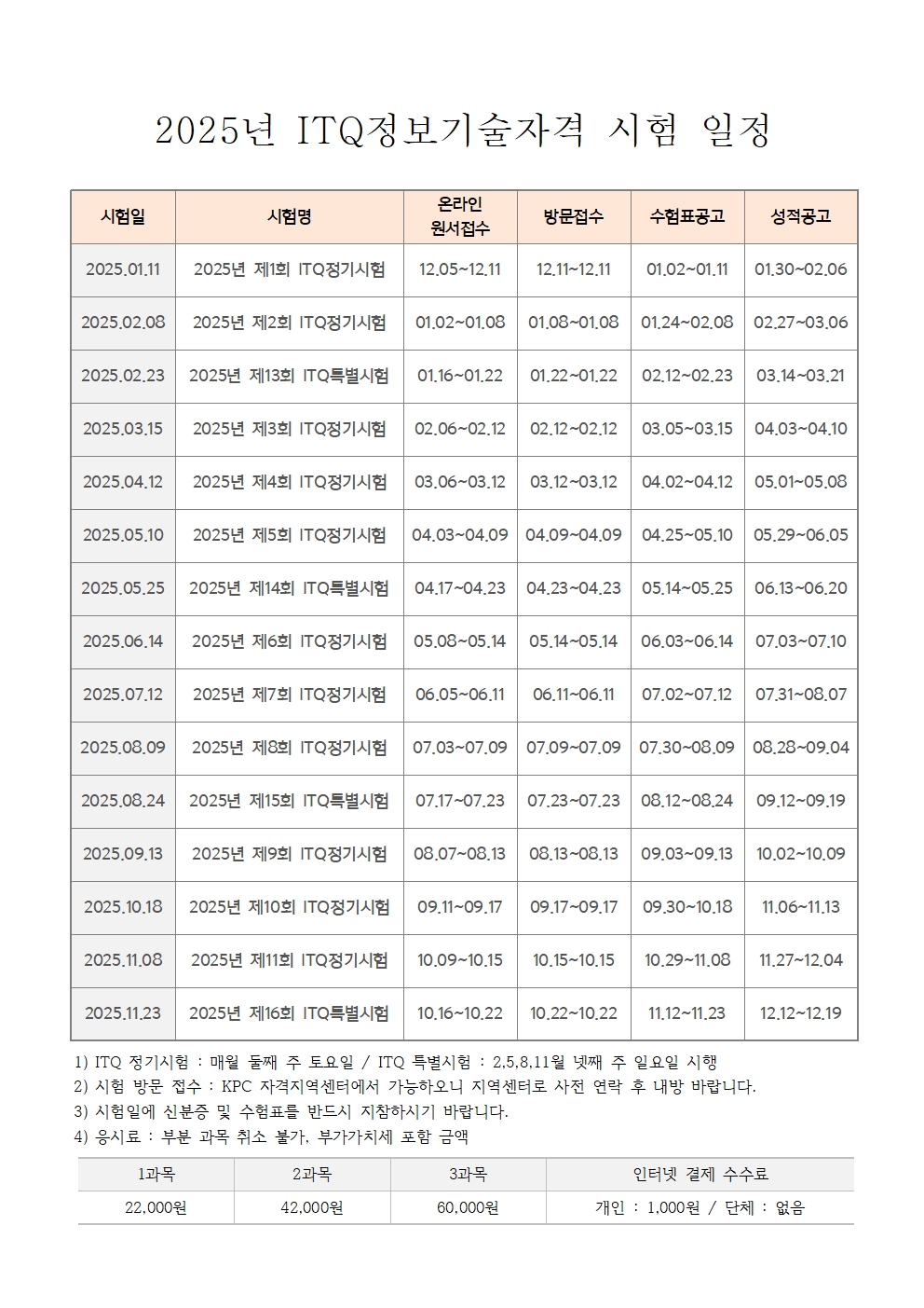 2025년 ITQ 시험 일정